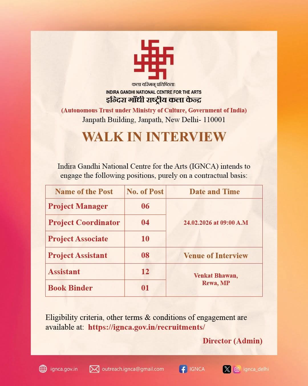 IGNCA में प्रोजेक्ट मैनेजर समेत 41 पदों पर निकली वैकेंसी…80 हजार तक है सैलरी…जानिए कब होंगे वॉक-इन इंटरव्यू ?
