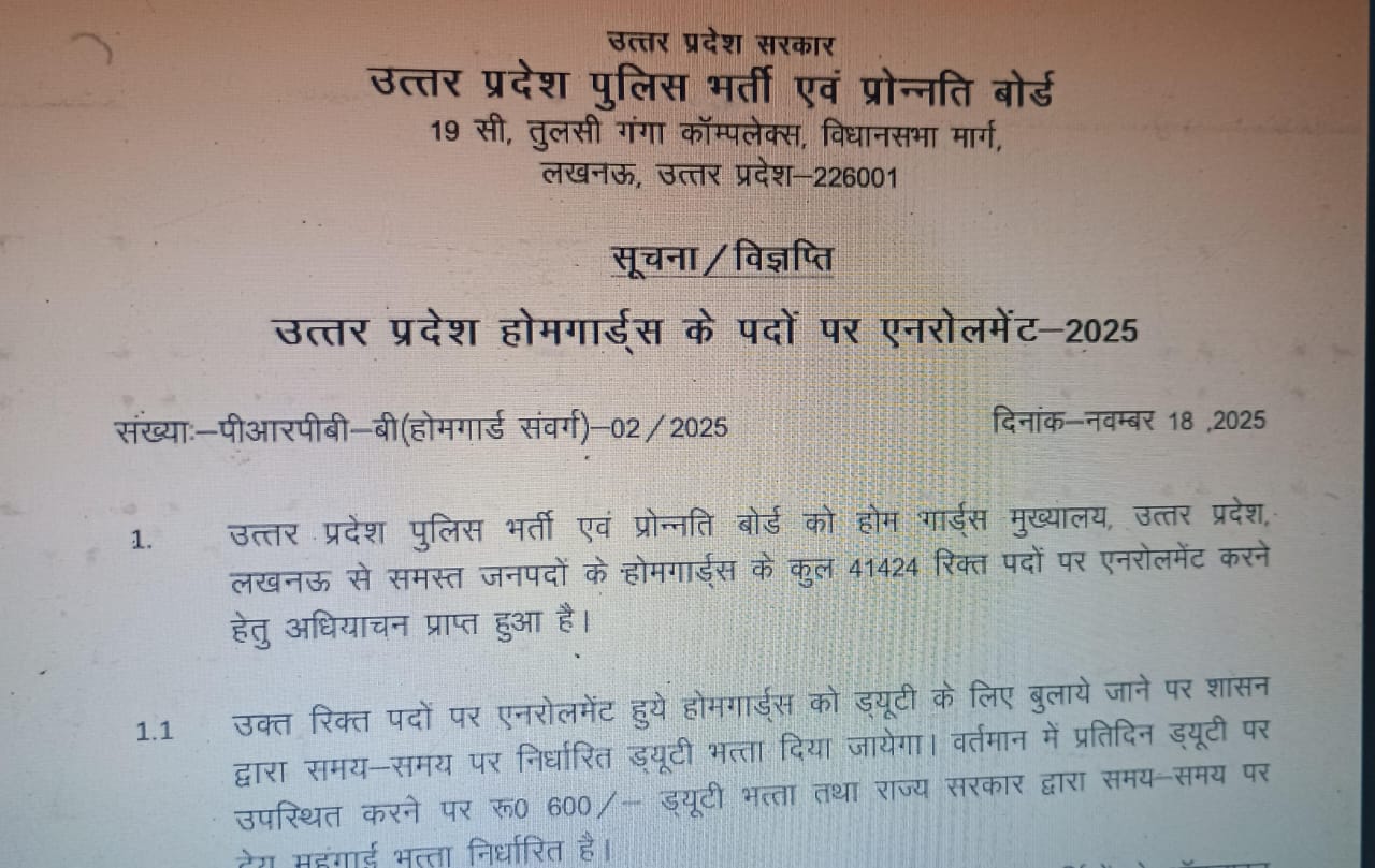 यूपी पुलिस भर्ती बोर्ड ने 41,424 पदों पर भर्ती के लिए जारी किया नोटिफिकेशन..जानिए कैसे करें आवेदन, कैसे होगा सिलेक्शन? November 18, 2025 No Comments