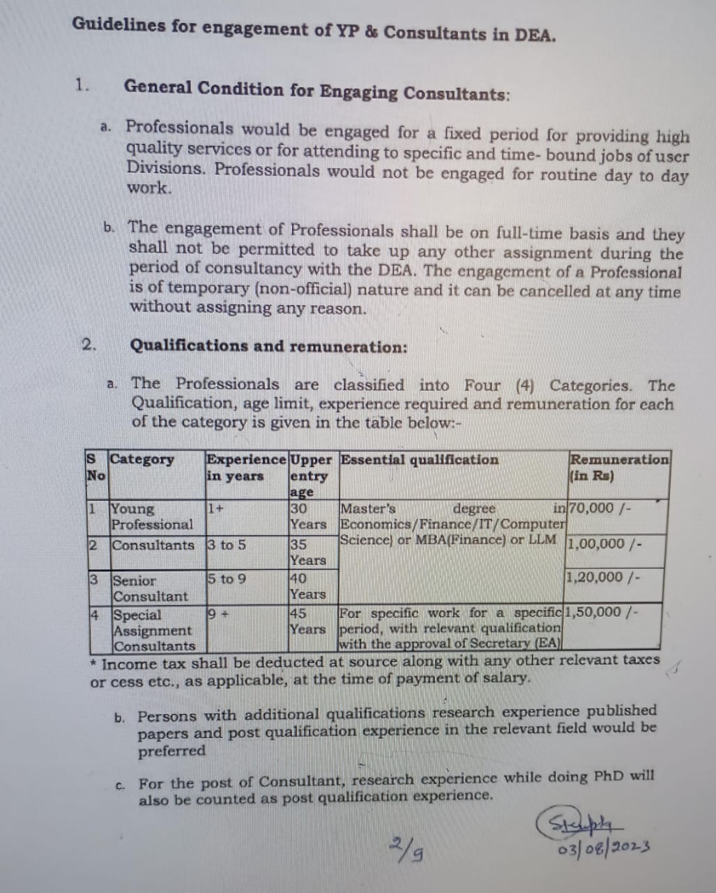 ज्यादा जानकारी के लिए वित्त मंत्रालय की आधिकारिक लिंक पर क्लिक करें https://mofapp.nic.in/cadre/Vacancy%20circluar%20including%20TOR%20of%20IER_0.pdf